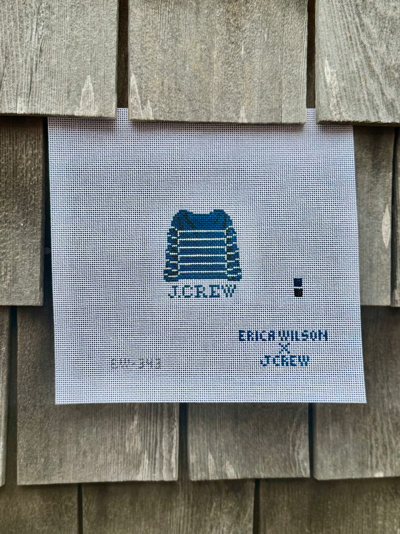 A timeless J.Crew favorite gets the needlepoint treatment! This navy-and-white Breton stripe sweater canvas is equal parts preppy and chic. Stitch it as a charm, ornament, or frameable keepsake.