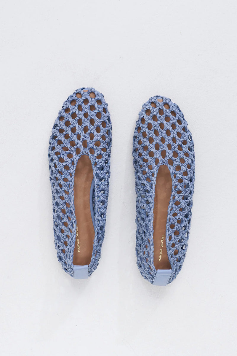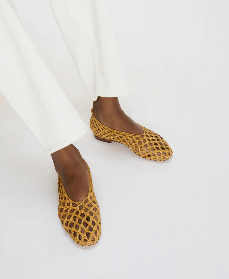 The Woven Ballerina offers a flexible fit that molds comfortably to your foot. With a cushioned vegetable tanned sole for comfort, this flat features a round toe and simple, clean design.