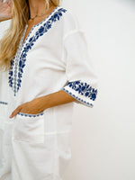 The Jetties Jumpsuit will be the easiest go-to thing in your closet. With a blue embroidered detail, this jumpsuit will be packed with you wherever you go!