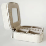 The most glamorous self finishing jewelry box on the market! These make for gorgeous bridesmaids gifts, or really any one in your life with lots of baubles!  These boxes can be used to store several rings, earrings, and dainty bracelets or necklaces. Equipped with a mirror, elastic pouch and several slits & compartments.