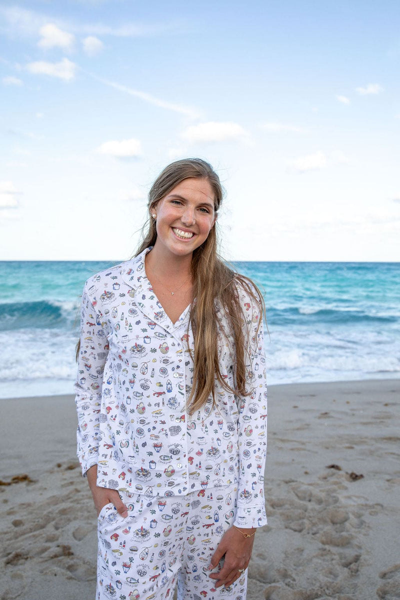 You know it's summer when you've cracked your first lobster. Erica Wilson's Clambake print was designed to bring the annual tradition of a summer feast among friends for life. You'll be "Happy as a Clam" every time you slip into these exclusive pajamas.